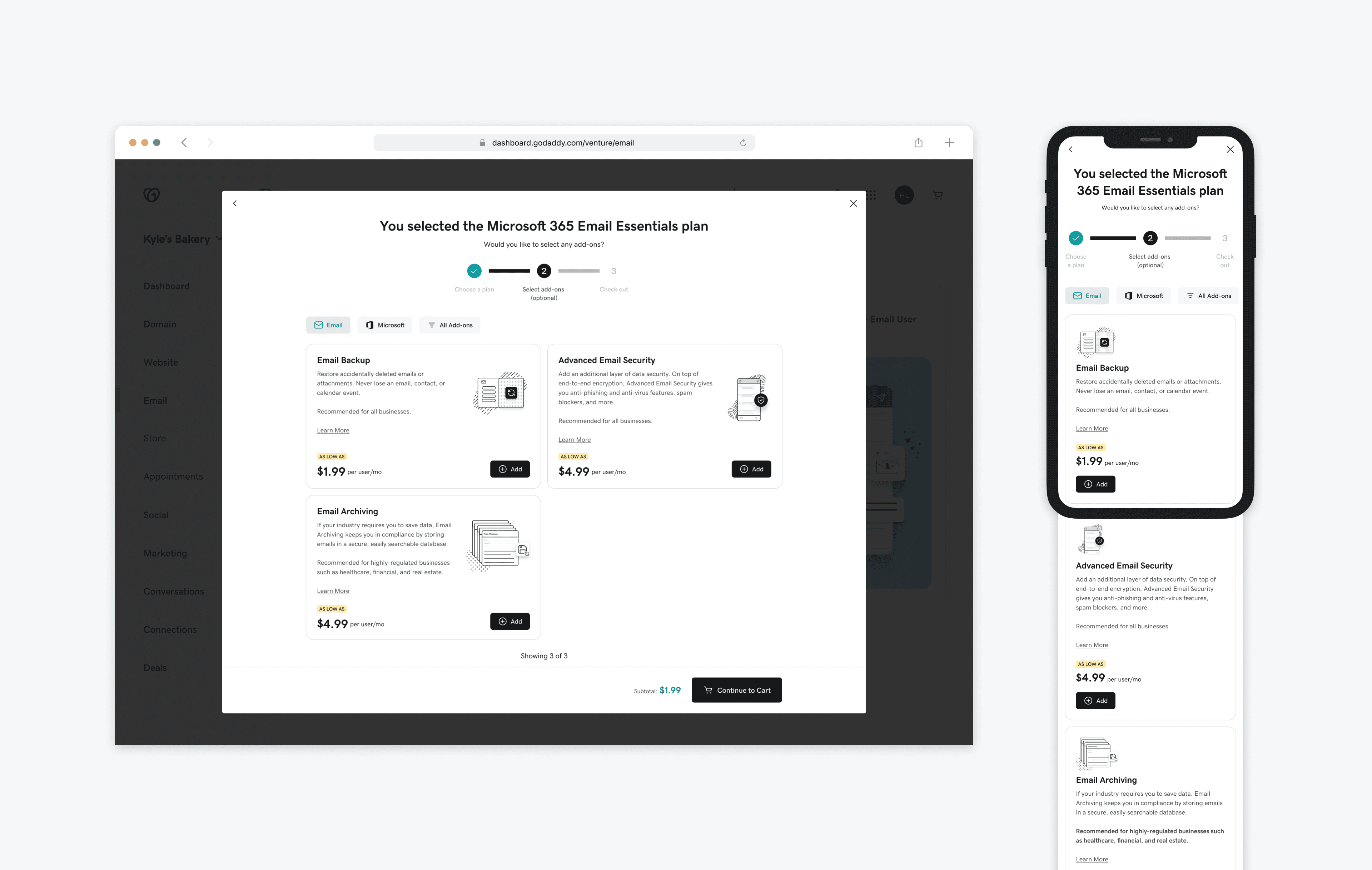 As a UX Designer at GoDaddy, the basis of my work is centered around how we can maximize our email offerings to SMBs and entrepreneurs.